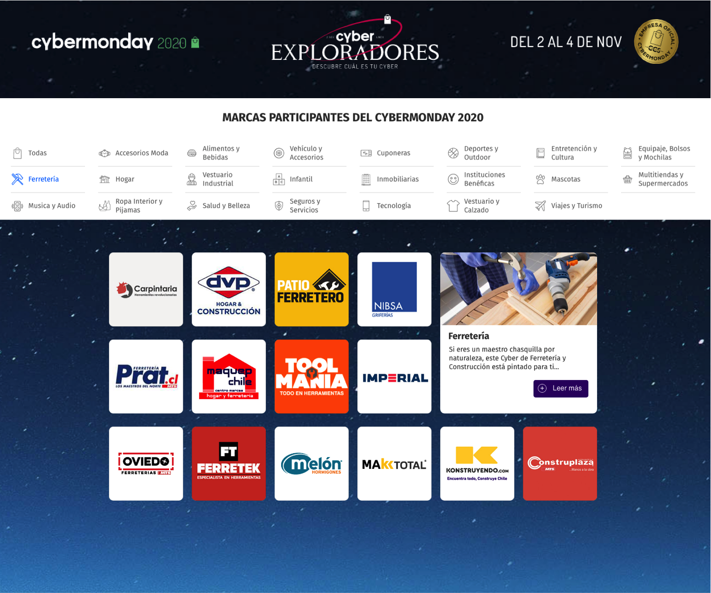 El magno evento de compras online, tiene como participantes los principales sitios del e-commerce chileno, destacando proveedores y retail del sector ferretero.