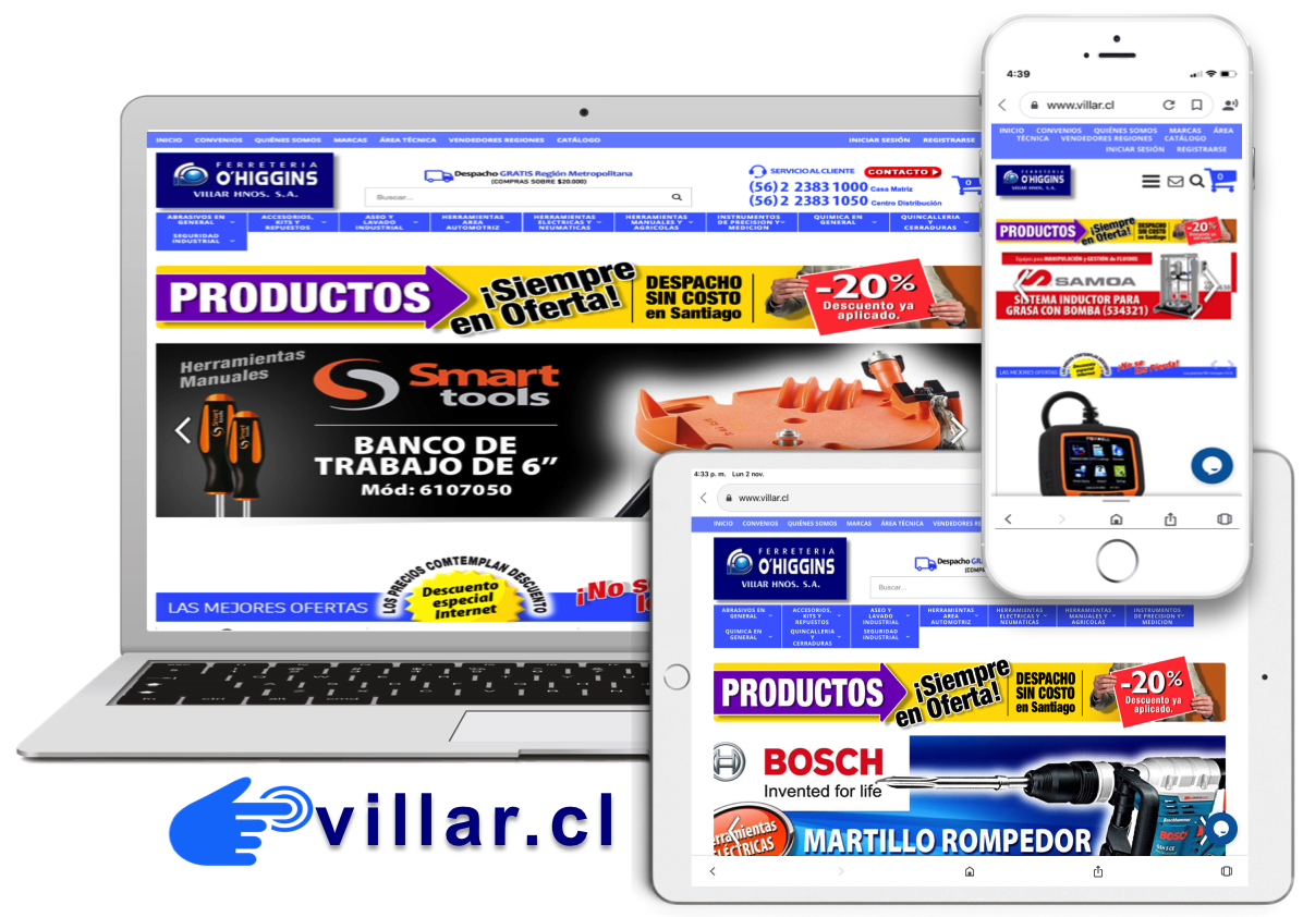 Dicha plataforma nace respaldado por estudios de mercado y tecnología de punta, con la implementación de telemetría y analítica del software Magento ver 2.x, han logrado conocer aún más a sus clientes, sus gustos y preferencias, potenciando su desarrollo y comunicación comercial; esto aunado a la integración del equipo del canal electrónico a la empresa M&P Marketing Digital, les permite sincronizar esfuerzos en su página web villar.cl y redes sociales IG: @ferreteriaohigginsoficial y FB: @ferreteriaohigginsoficial con acciones de marketing, concursos… una estrategia exitosa que ha logrado un incremento de más de 2.000 seguidores en sólo 3 meses.