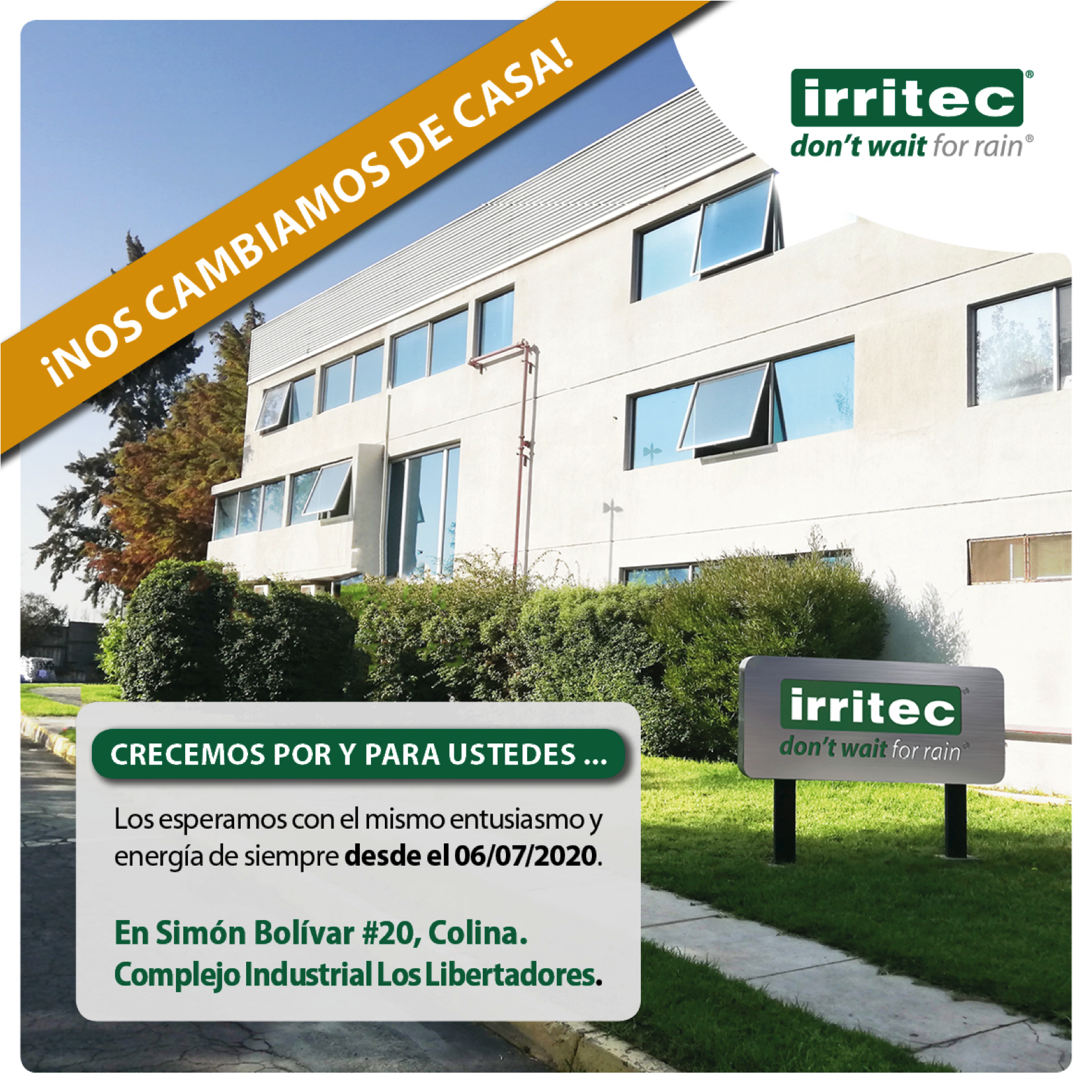 “A pesar de la contingencia que se vive en el país y entendiendo la situación que muchos deben estar viviendo, en Irritec siguen trabajando en la constante búsqueda por prestar un mejor servicio y atención. En función de eso, la empresa anunció su mudanza. Ahora podrán encontrar a Irritec Chile en su nueva dirección de Simón Bolívar #20, Colina, ubicada en el complejo Industrial Los Libertadores, donde esperan a los clientes con mucho entusiasmo y energía.