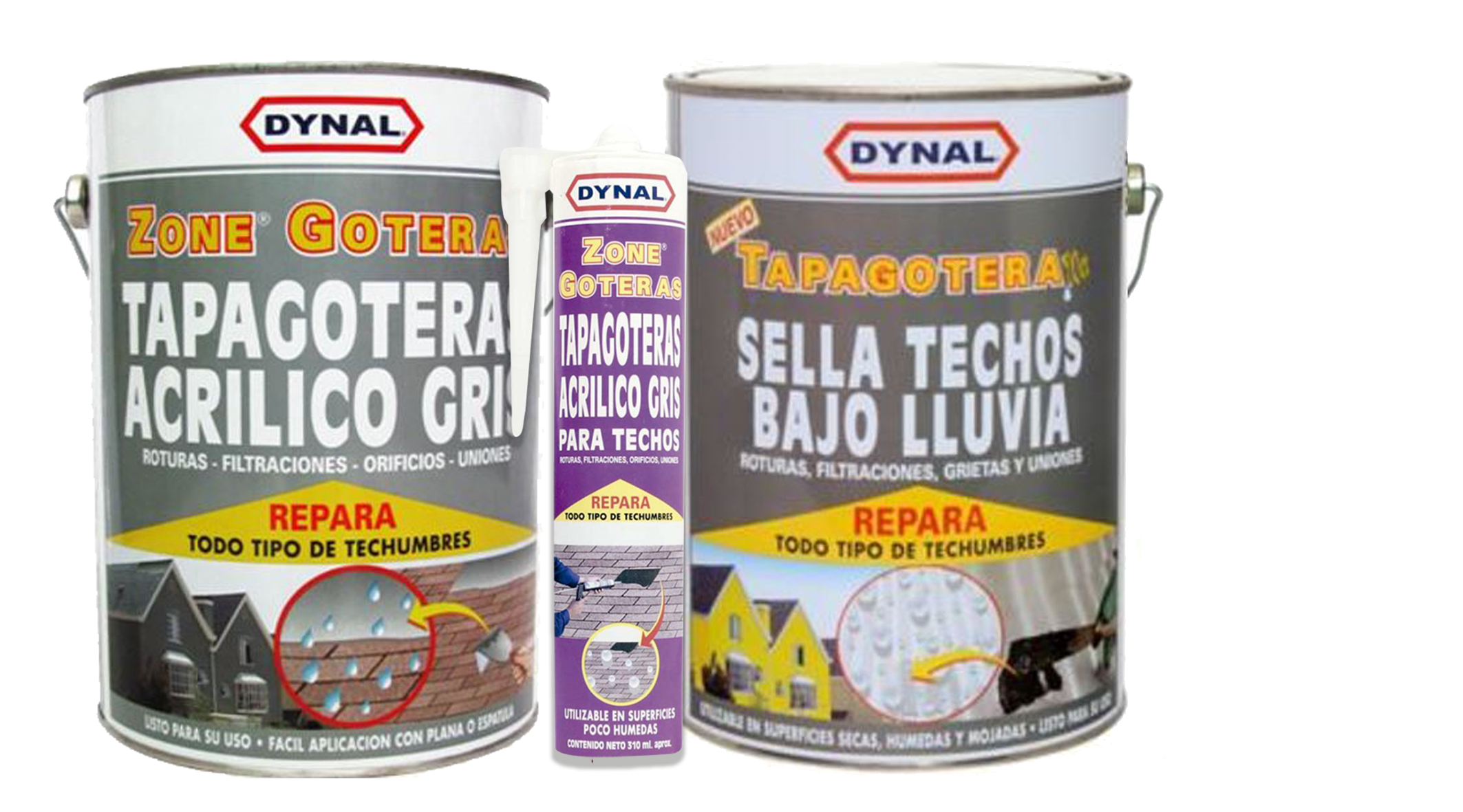 Soluciones seguras y confiables de Dynal para el tapado de orificios y grietas en techos, que previene la proliferación de hongos, moho y manchas en superficies; eflorescencias, desprendimientos y grietas; pudrición en maderas y corrosión en metales, y los daños que traen las filtraciones y goteras en el hogar y empresas.